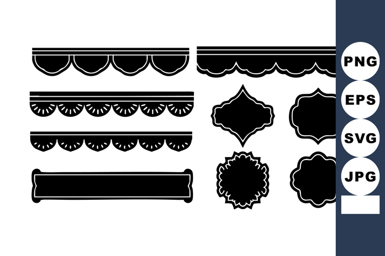 Vintage Decorative Border Label Black Design Shape Element Frame Scalloped