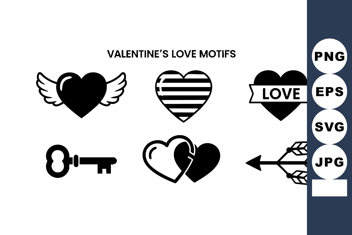 Valentine love motifs heart key arrow romantic love symbols example image 1