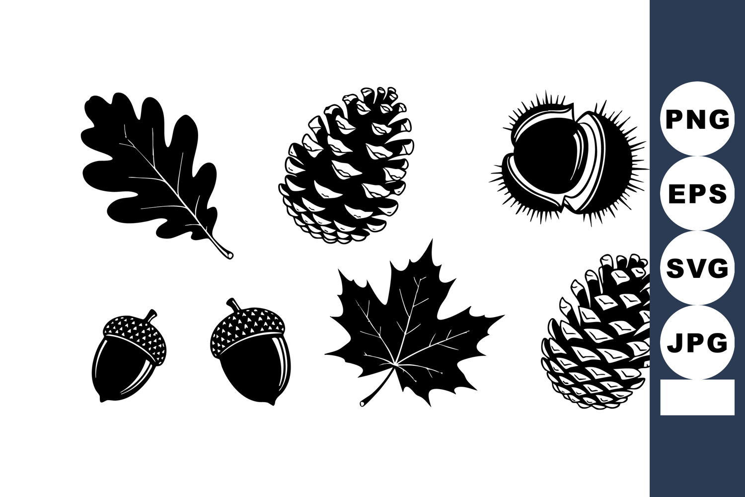 Collection of autumn leaves acorns and pine cones black silh example image 1