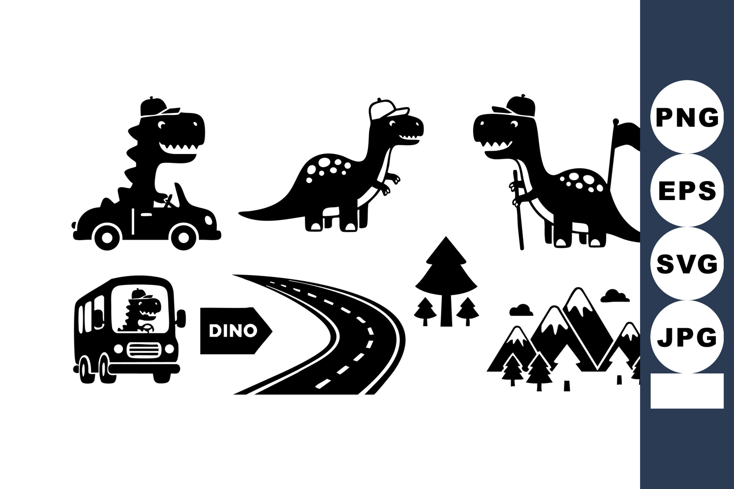 Similar Design Products to Dinosaur vector set with cars, road, bus, tree, and mountain