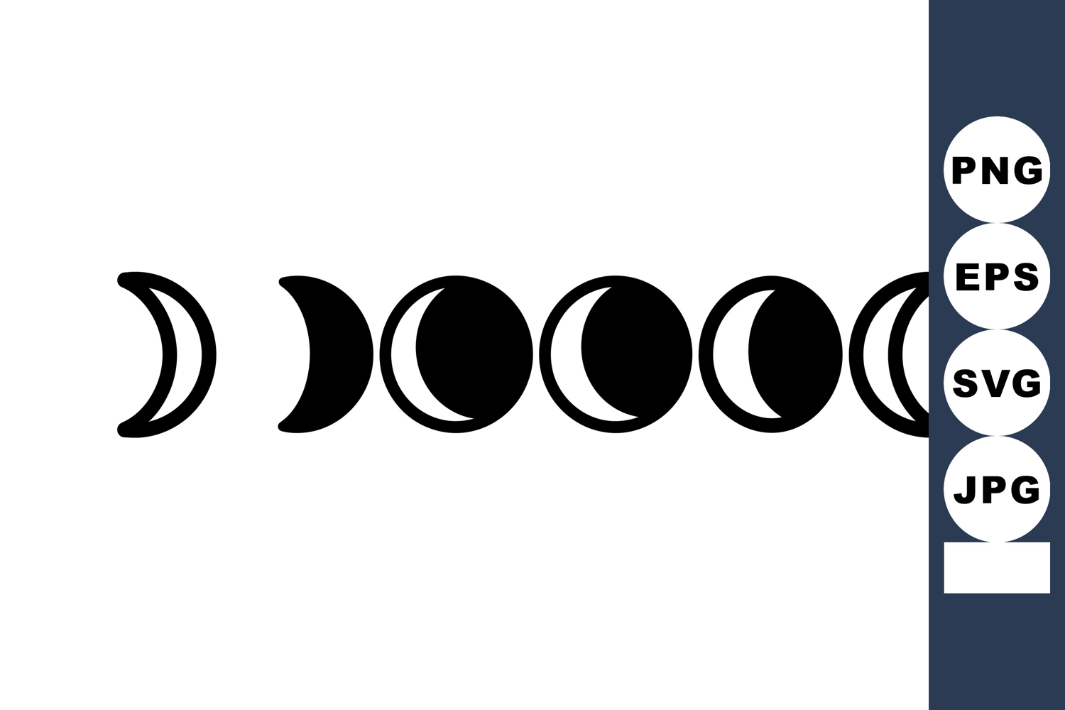 Illustration Vector Black White Moon Cycle Half Lunar Crescent Phases