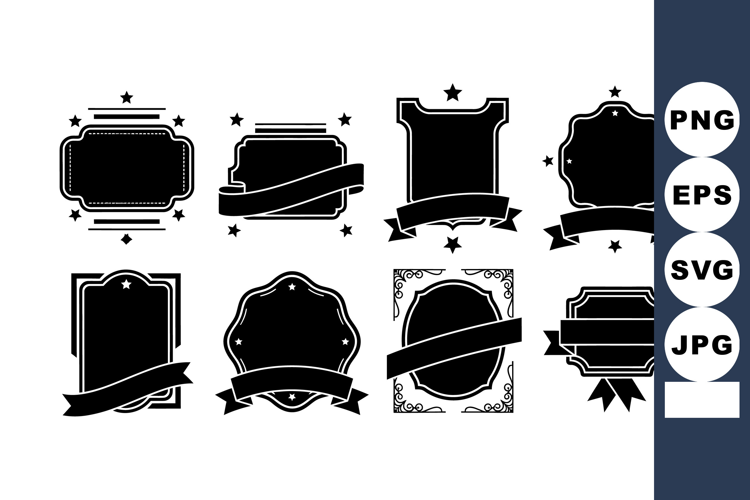 Vintage decorative black label badge shapes with ribbons for example image 1