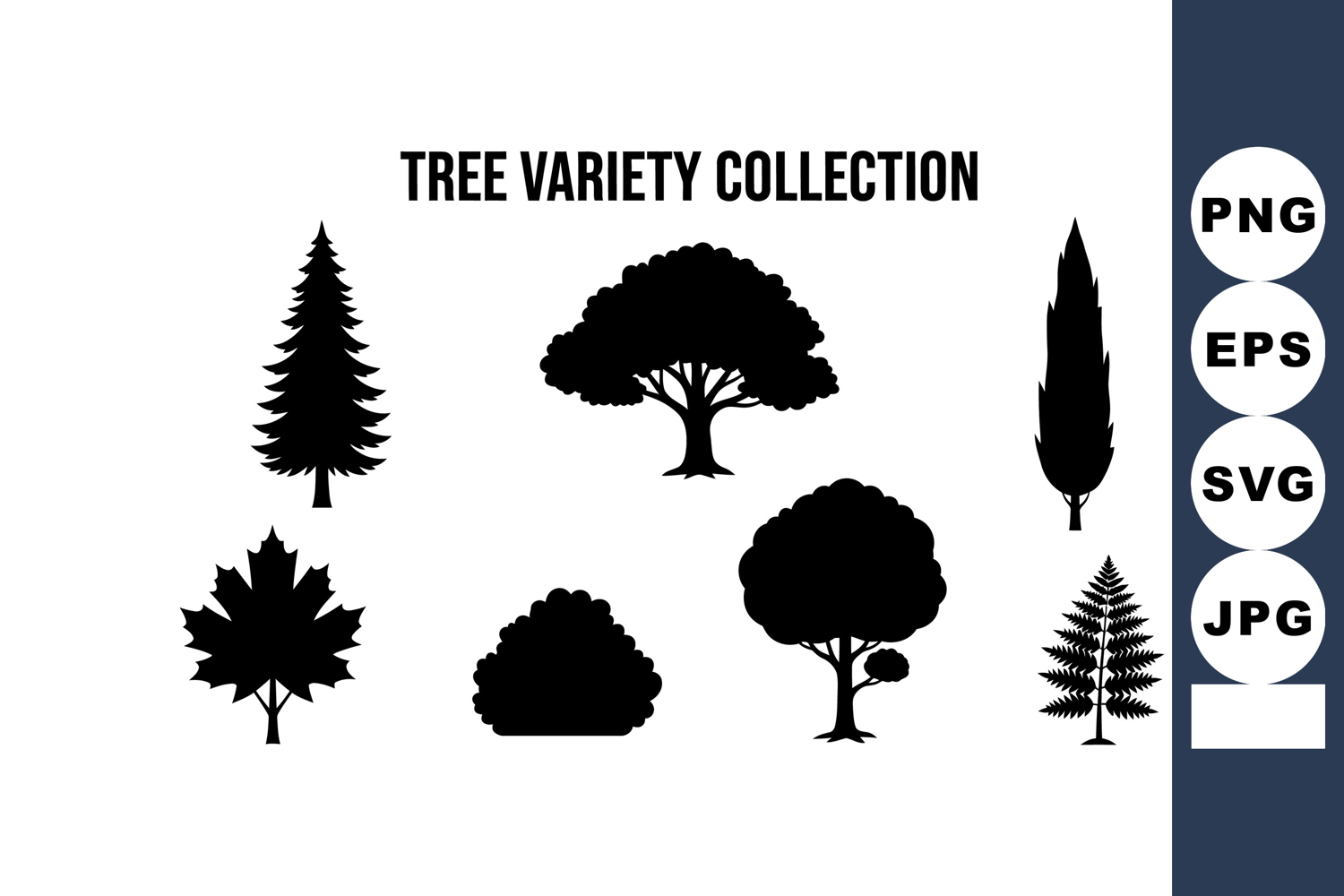 Tree Variety Collection Silhouettes of Different Tree Types example image 1