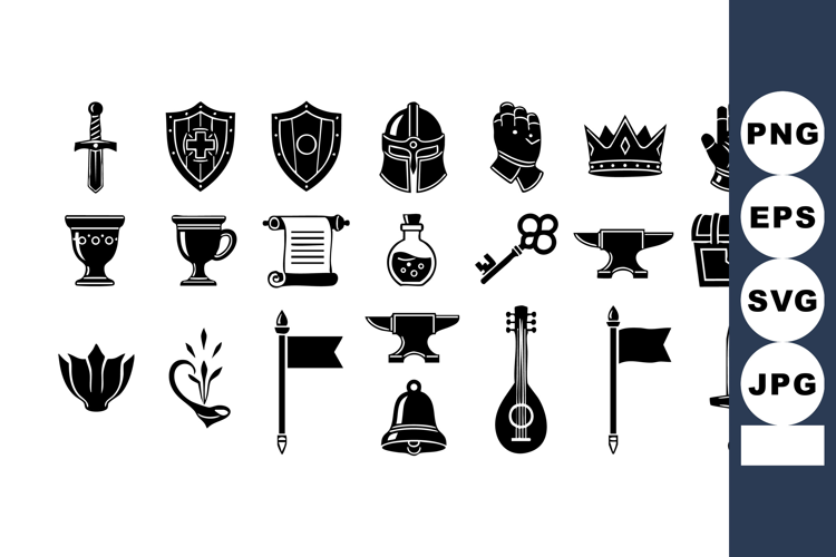 Scroll Crown Shield Helmet Sword Cup Potion Armor Trophy Gauntlet