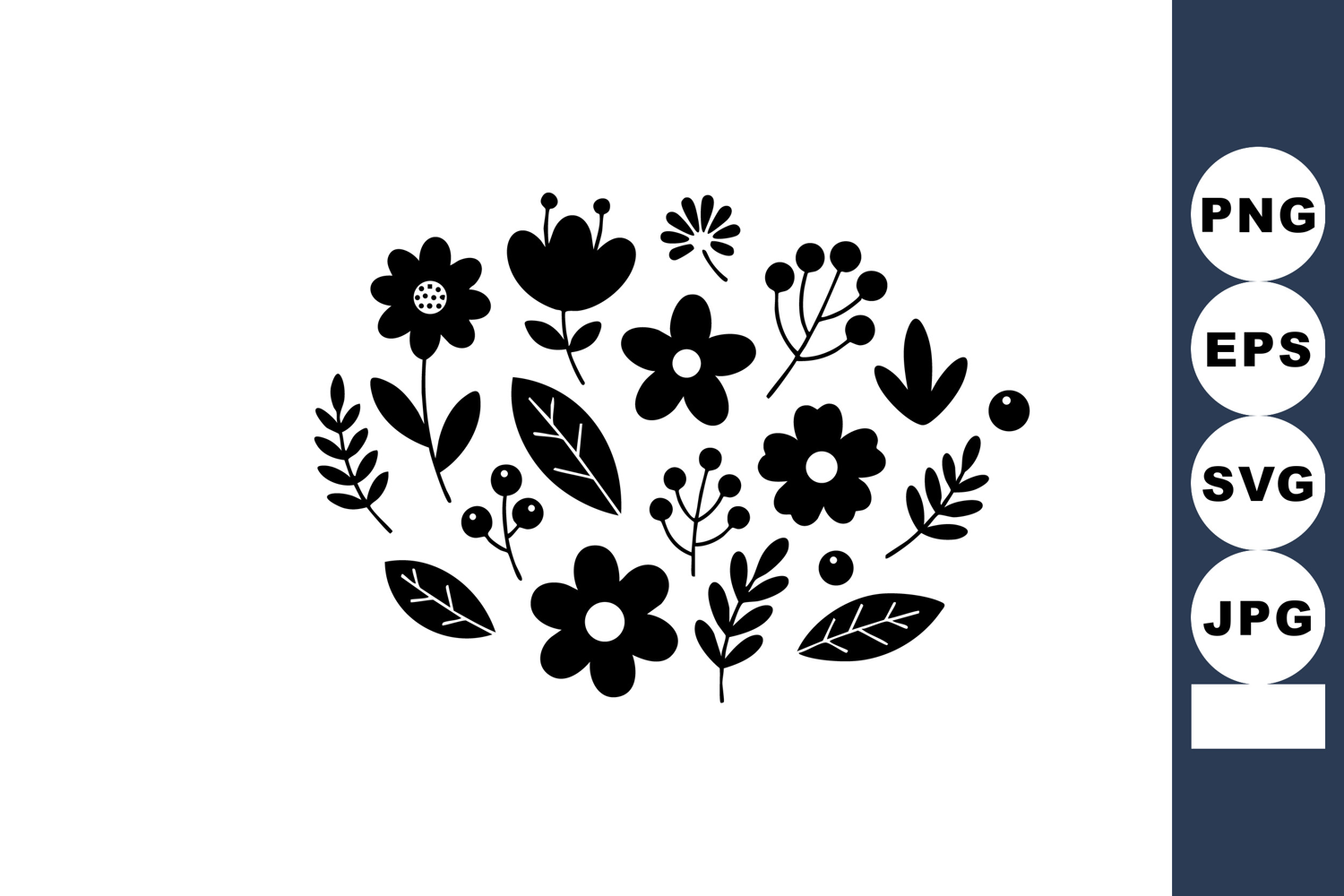 Similar Design Products to Black floral silhouettes vector with leaves and small flower