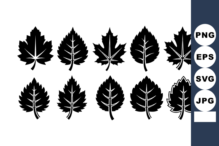 This vector shows black silhouette maple and linden leaves arranged in two rows, perfect for nature-themed graphic design projects. Calm.