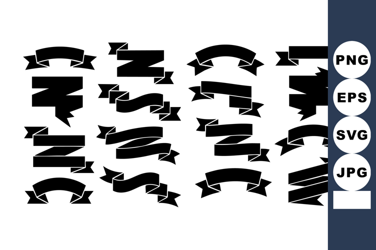 This vector file shows multiple black ribbon banners in different shapes and styles for graphic design and decoration, presenting a classic look.