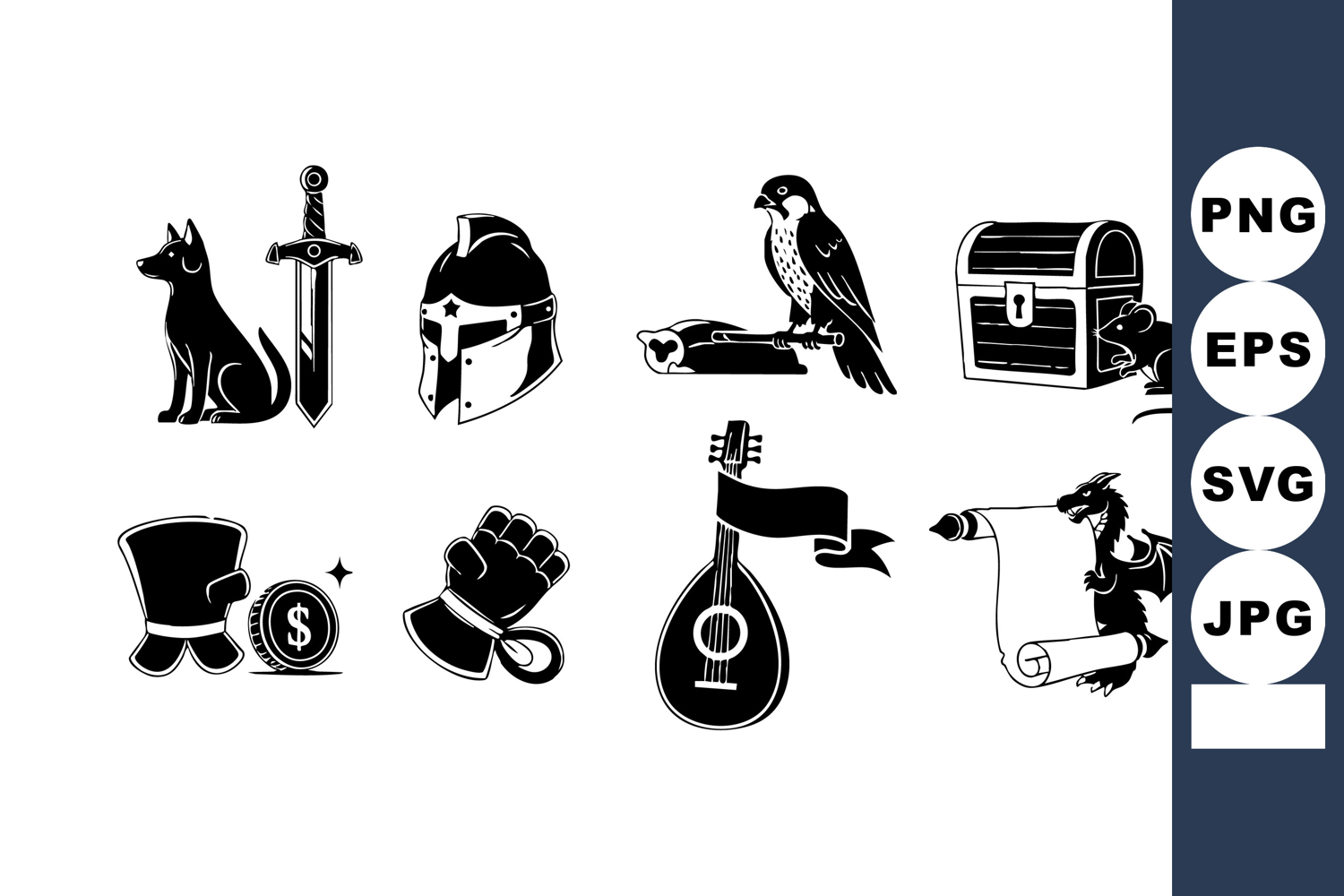 Medieval fantasy icons with dog sword helmet falcon example image 1