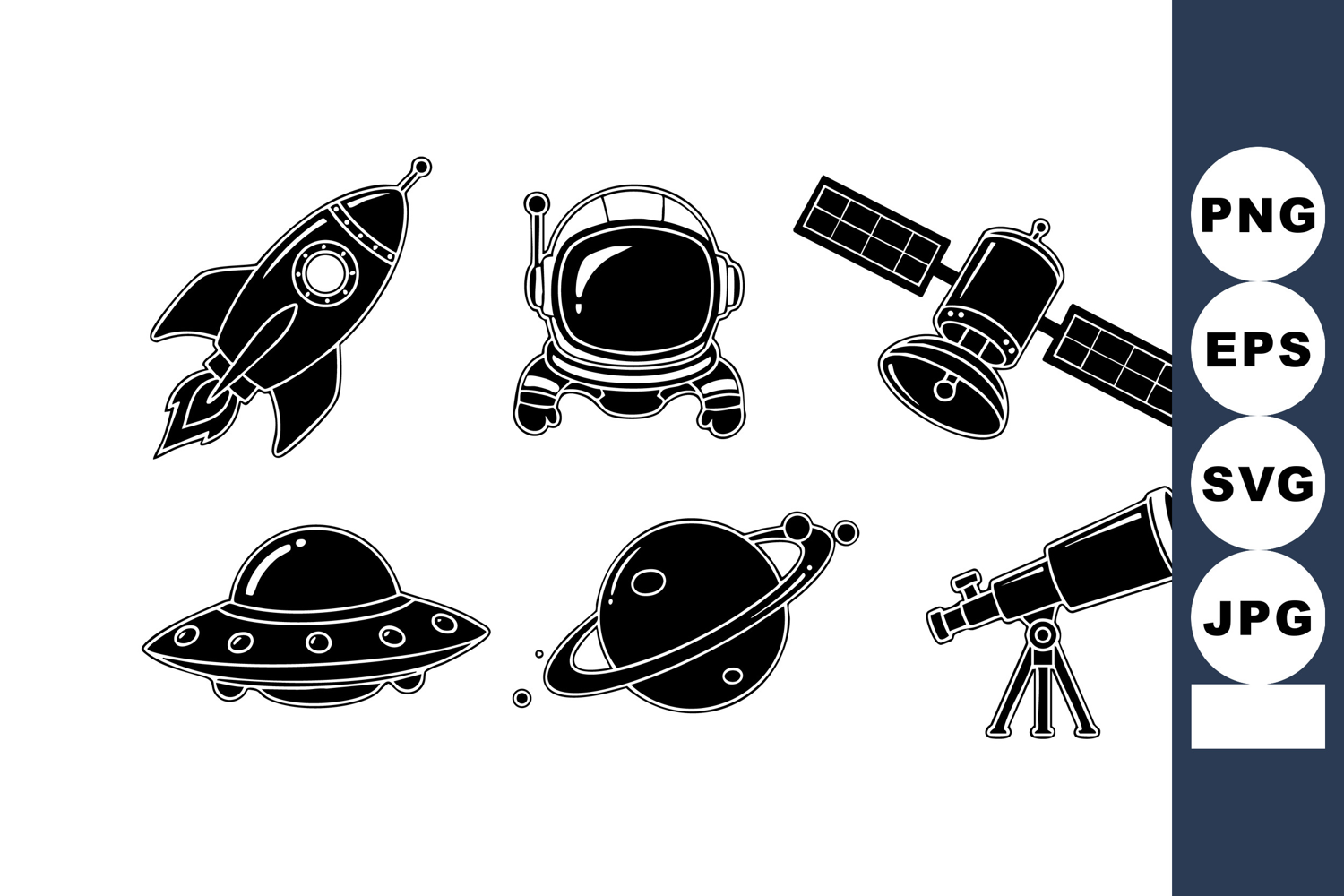 Space icons rocket astronaut satellite UFO planet telescope example image 1