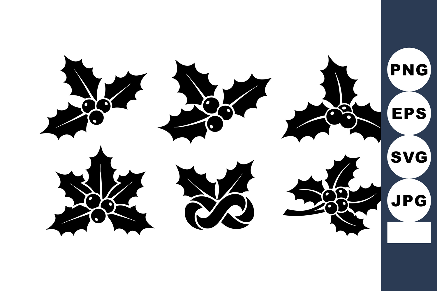 Illustration Vector Holiday Black Christmas Silhouette Leaves Decoration Berries Holly