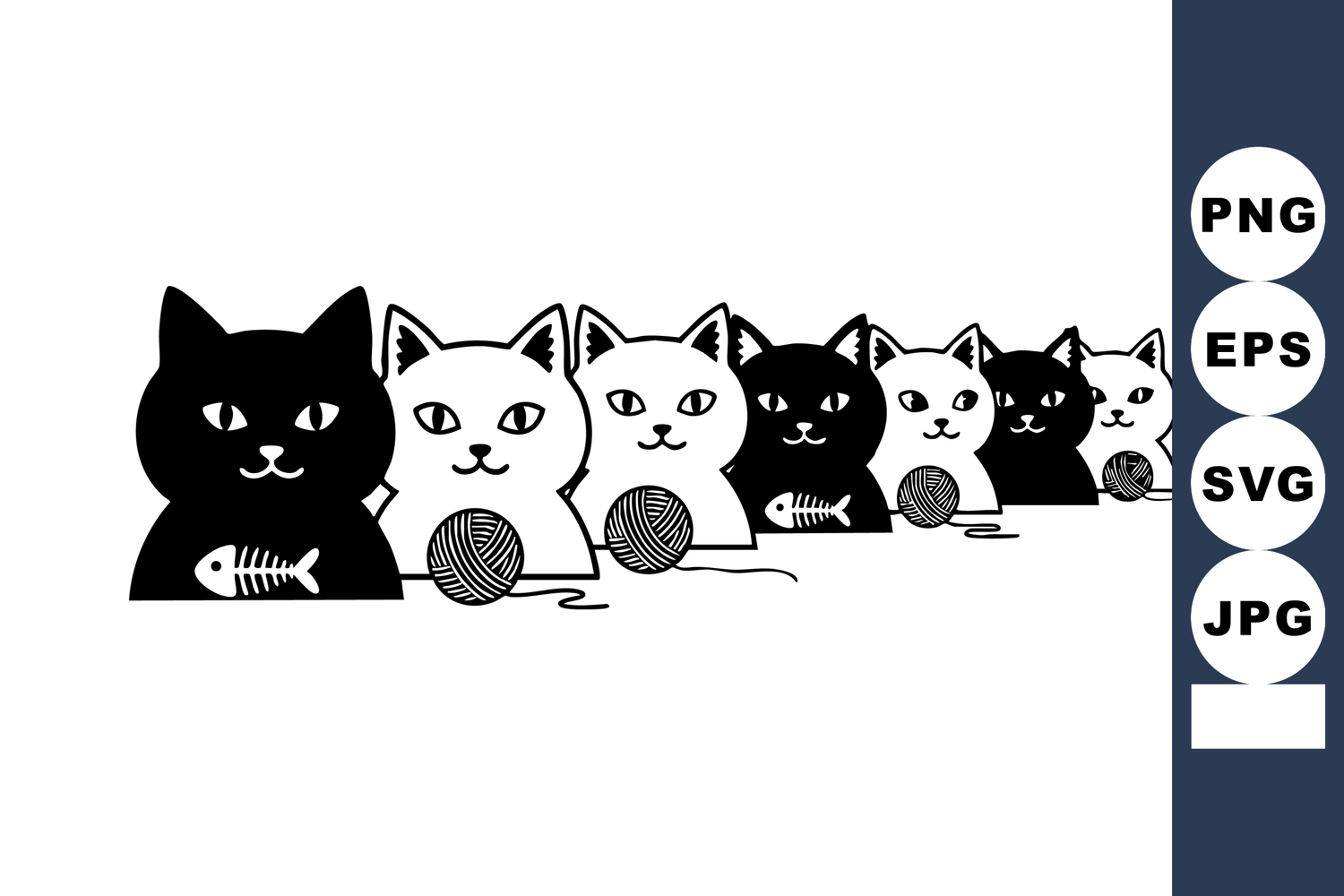 Similar Design Products to Black and white cats playing with yarn balls vector illustra