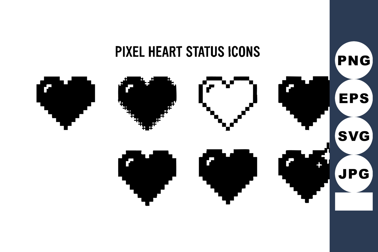 Similar Design Products to Pixel heart status icons set in black pixel art style for di