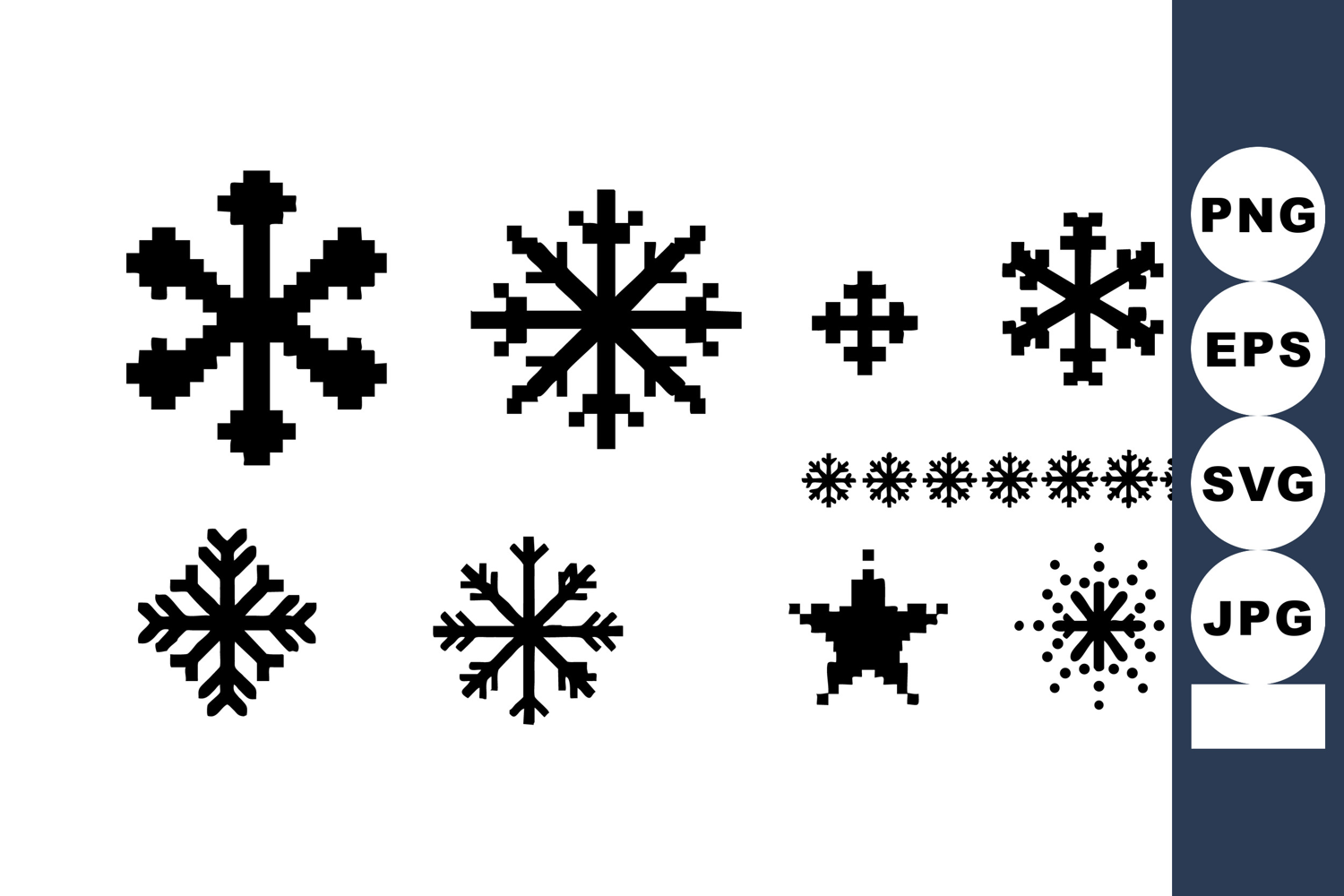 Pixel art black snowflakes and winter symbols vector illustr example image 1