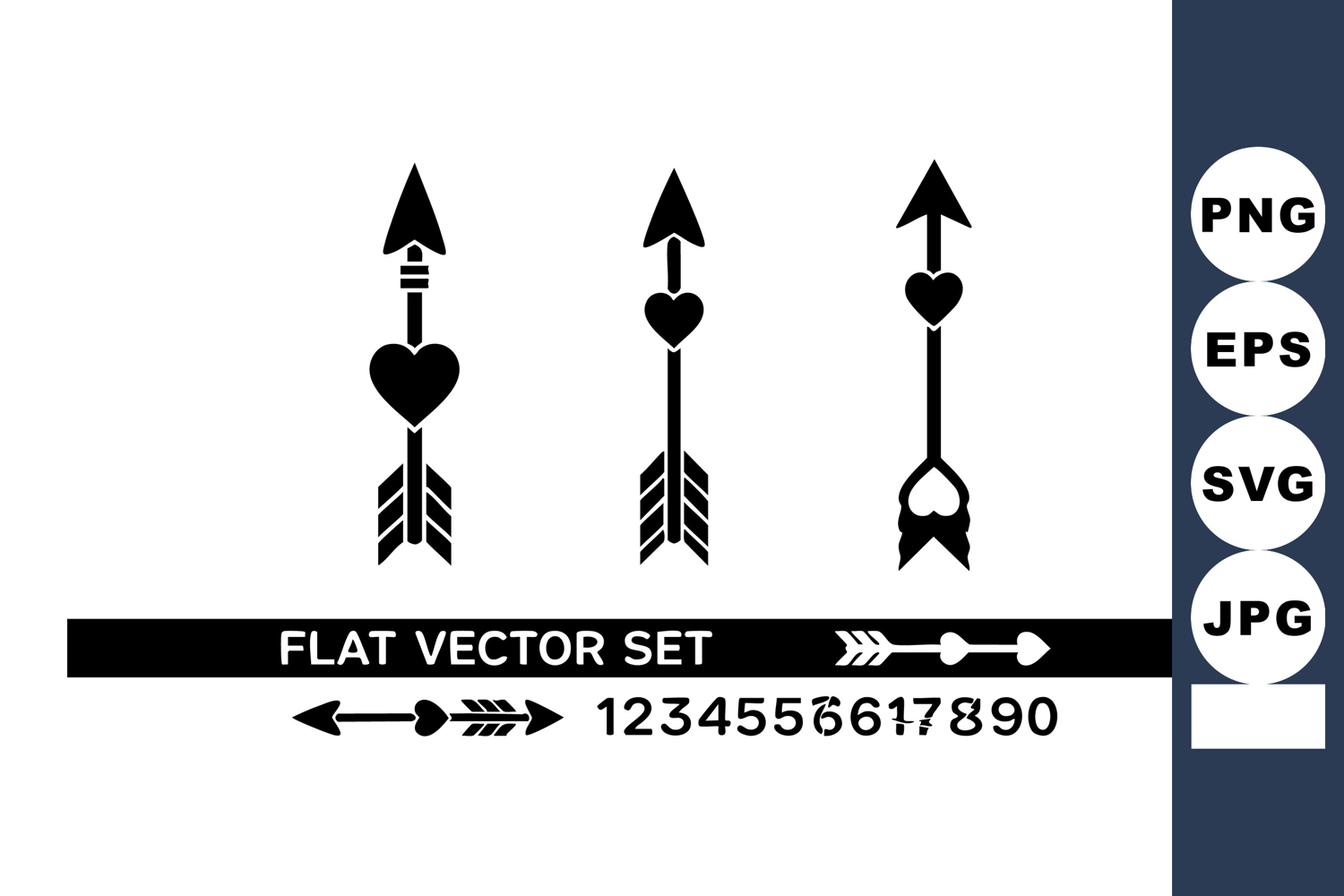 Heart arrow silhouette flat vector set with number symbols a example image 1