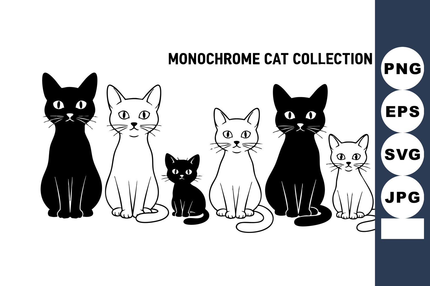 Similar Design Products to Monochrome cat collection black and white sitting feline ill