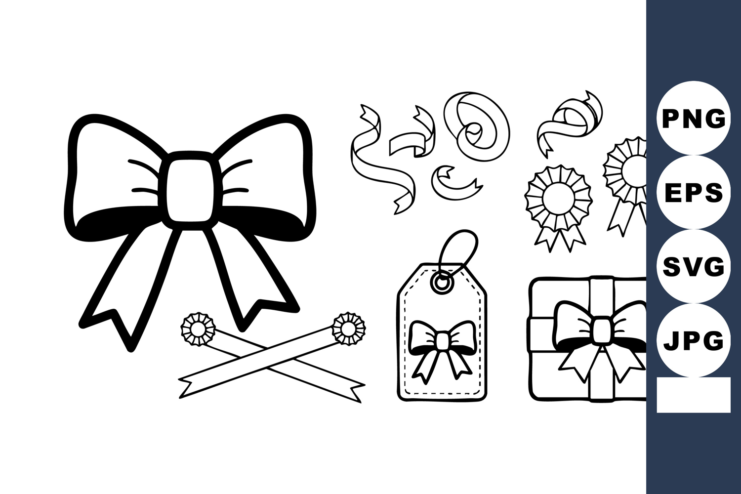 Outline Black Celebration Ribbon Tag Decoration Bow Gift Rosette Streamer