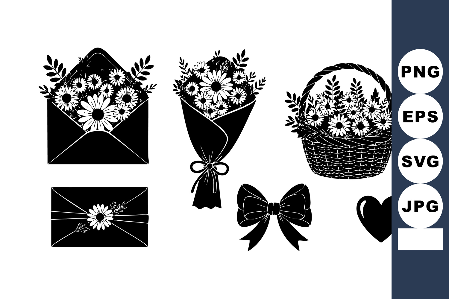 Design Floral Flower Heart Silhouette Decoration Bow Bouquet Basket Envelope