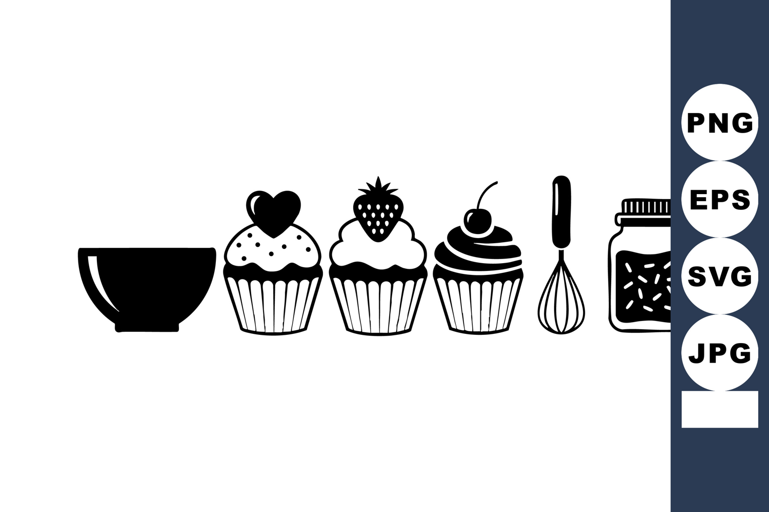 Similar Design Products to Cupcake and baking utensils set with bowl whisk and jar illu