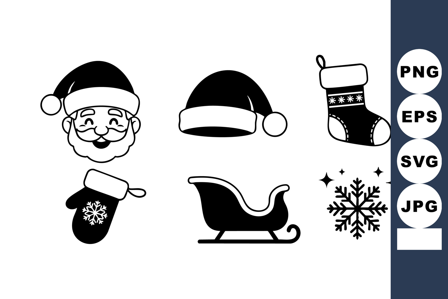 Santa Claus Hat Sleigh Stocking Snowflake Christmas Icon Set example image 1