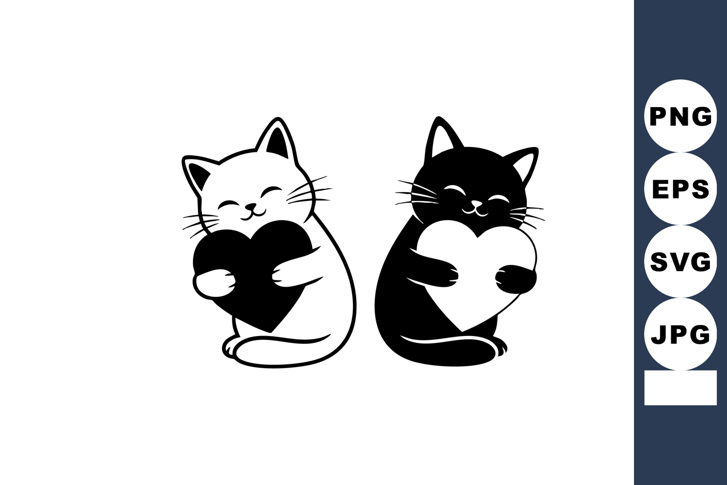 Similar Design Products to Cute black and white cats holding hearts vector illustration