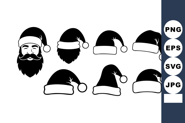 Santa Claus Black Beard and Various Santa Hats Silhouettes V