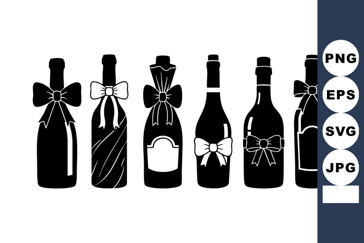 Black Celebration Ribbon Wine Silhouette Drink Alcohol Bow Beverage Bottle