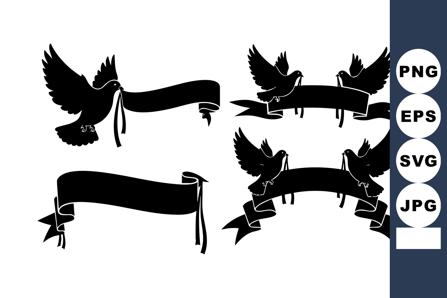 Banner Design Ribbon Silhouette Decoration Element Bird Flying Dove Wing