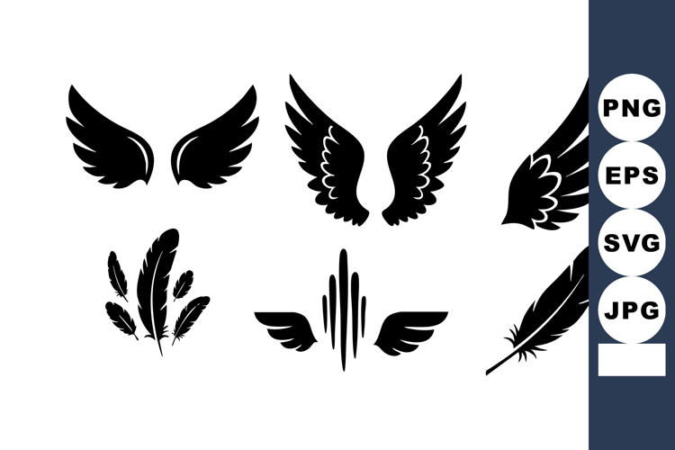 Similar Design Products to Black Angel Wings and Feather Vector Set with Various Wing D