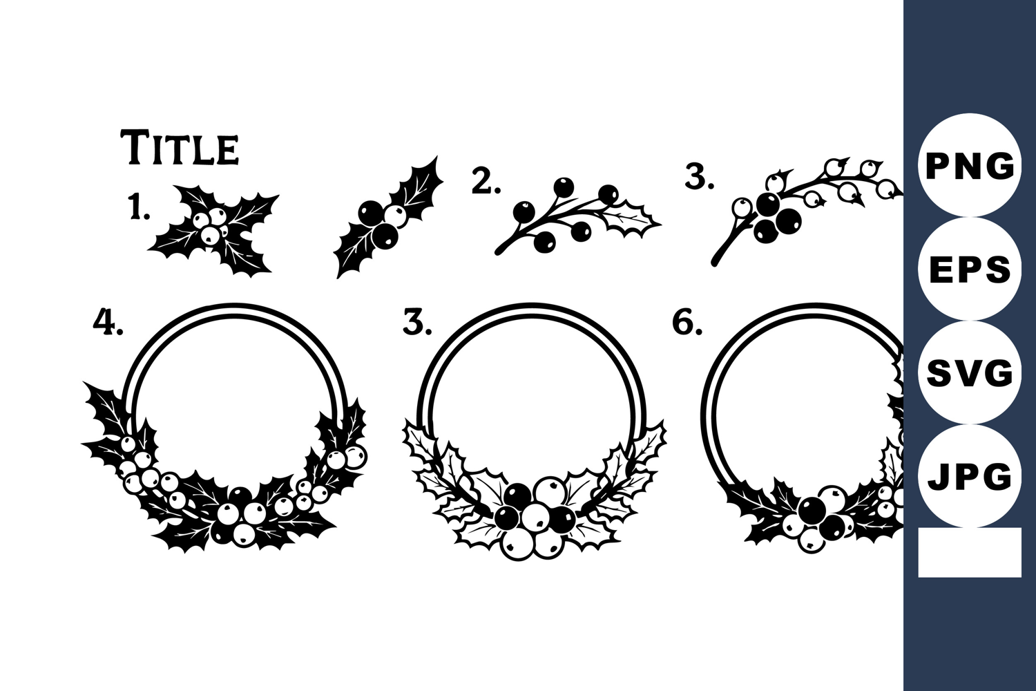 Holly Berry Vector Illustrations with Circular Wreaths in Bl example image 1