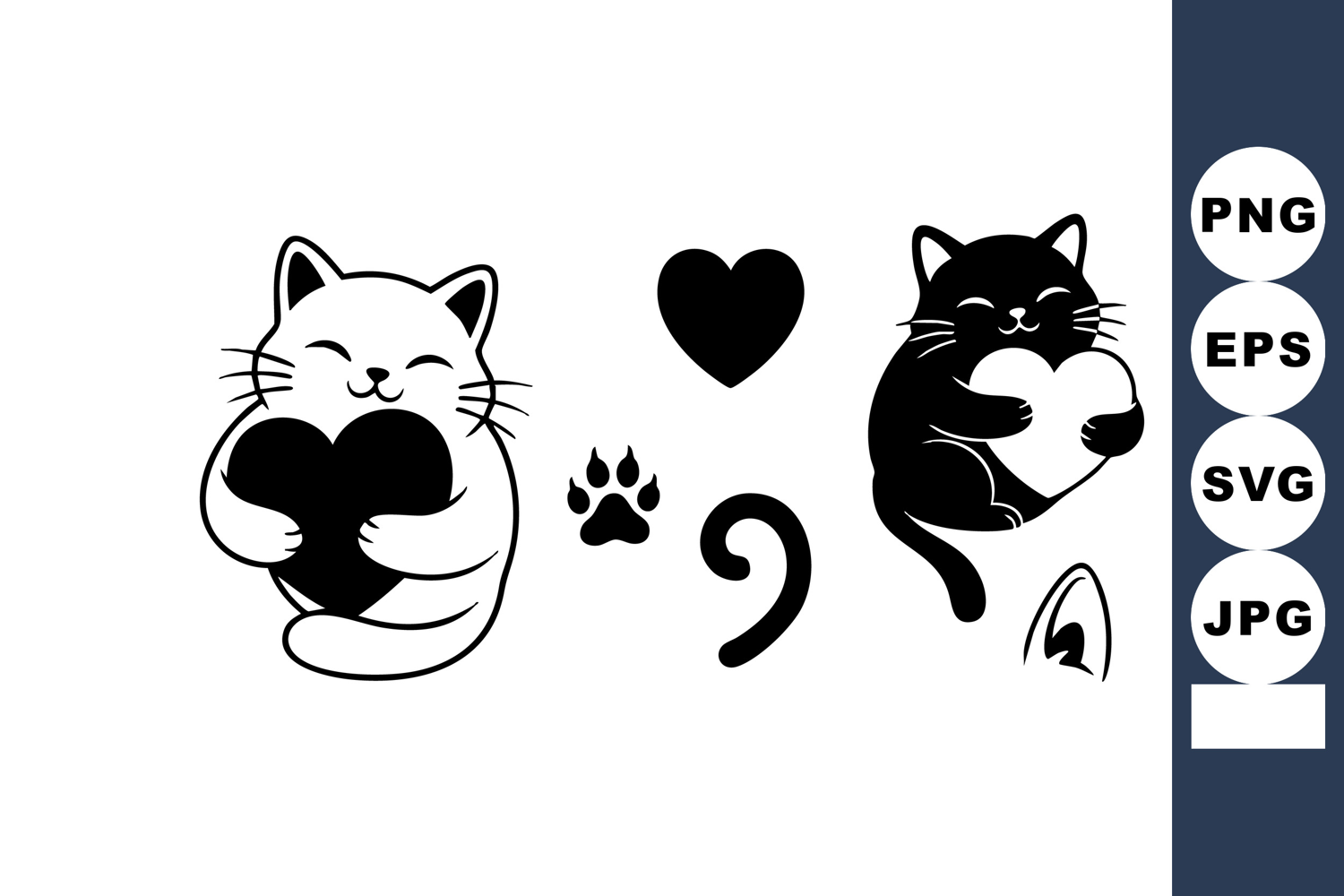 Cute black and white cats holding heart shapes with paw prin example image 1