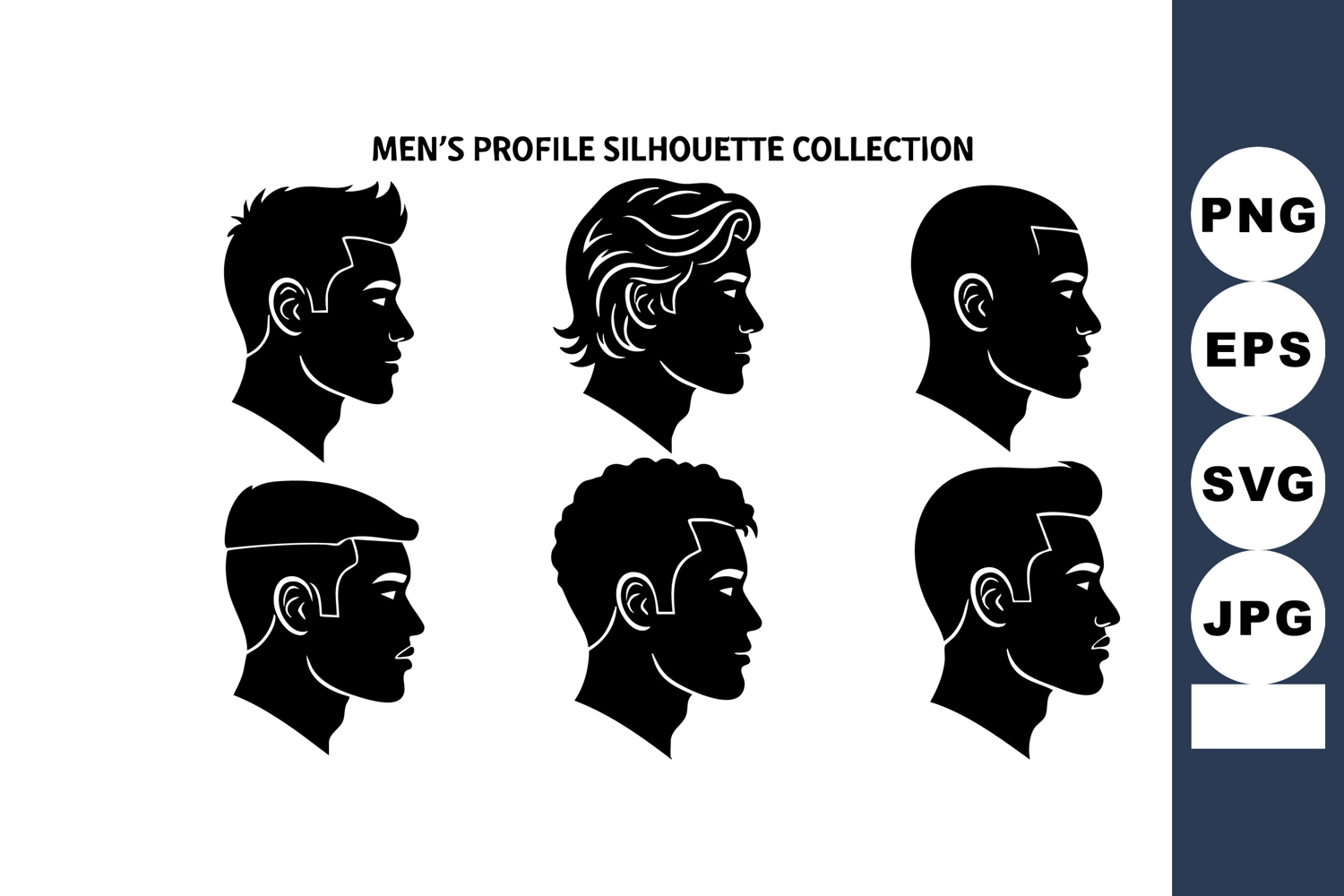 Men’s profile silhouette collection showing diverse male hea example image 1