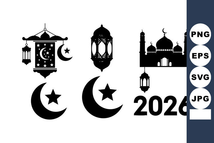 Islamic crescent moon star mosque lanterns 2026 vector icons example image 1