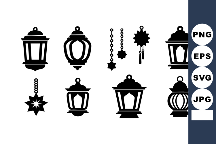This vector features various vintage lanterns and hanging star-shaped pendants in black silhouettes, perfect for design projects requiring classic lighting motifs and decorative icons, elegant style.