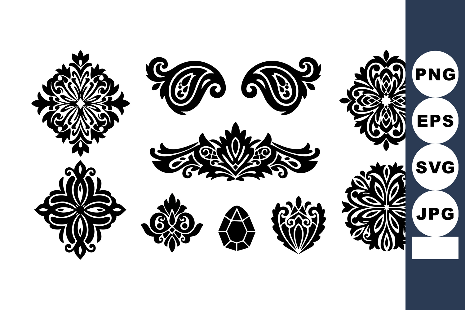 Vintage Illustration Vector Black Design Ornamental Floral Pattern Decoration Element