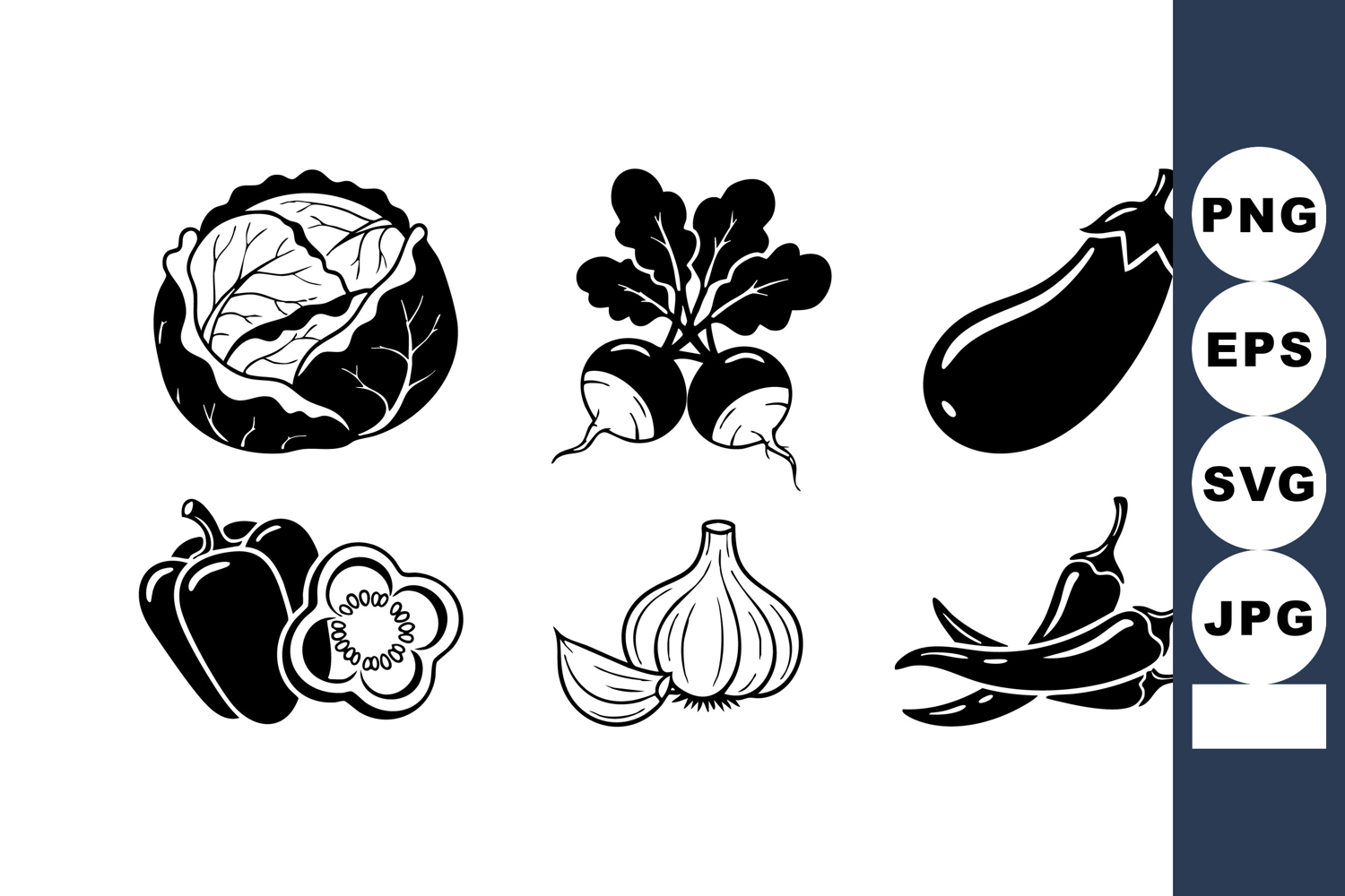 Vector Black Eggplant Pepper Garlic Cabbage White Vegetable Radish Chili