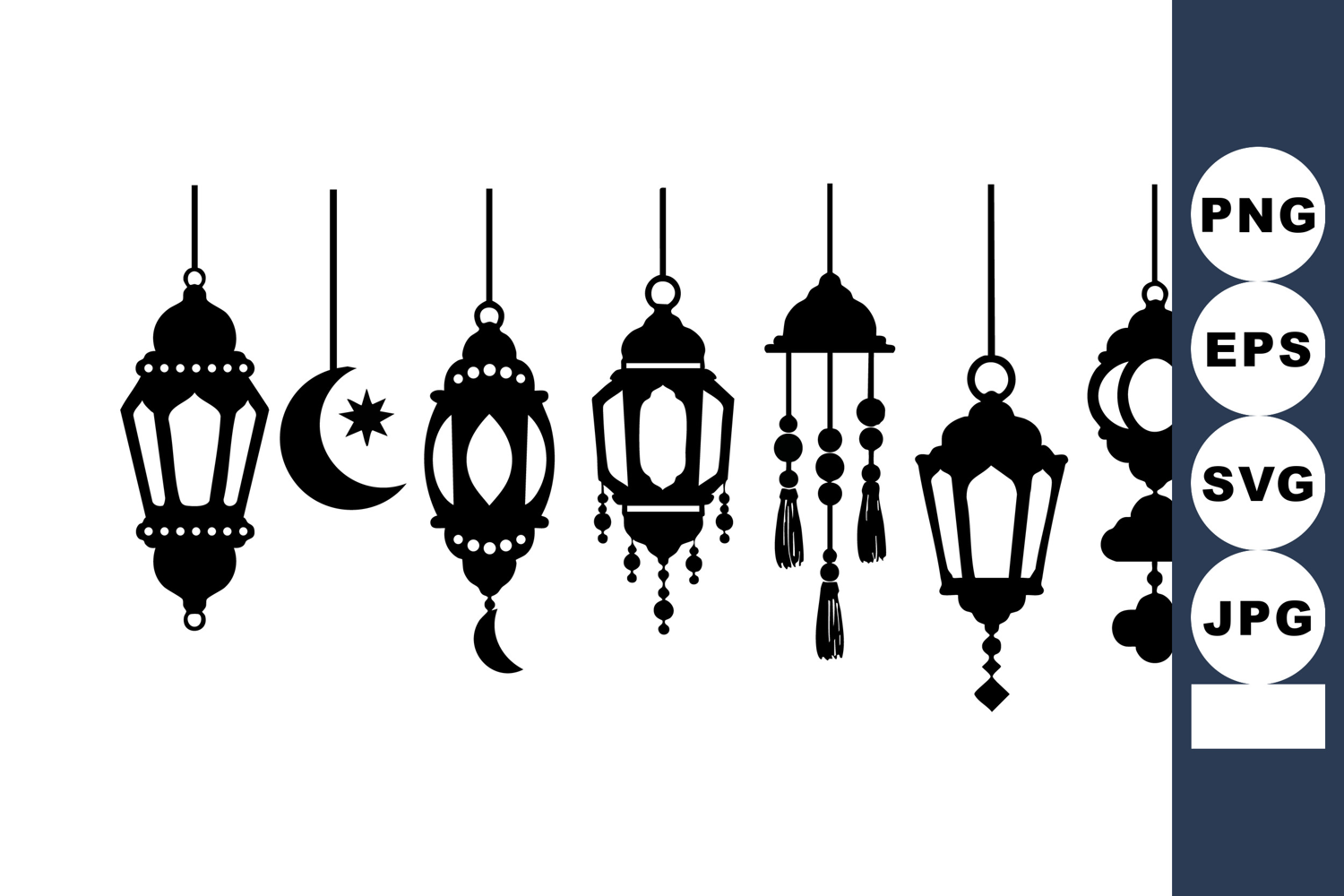 Traditional Islamic lanterns and crescent moon black silhoue example image 1