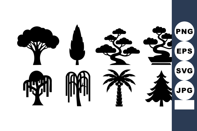 Various tree silhouettes including oak pine bonsai palm and example image 1