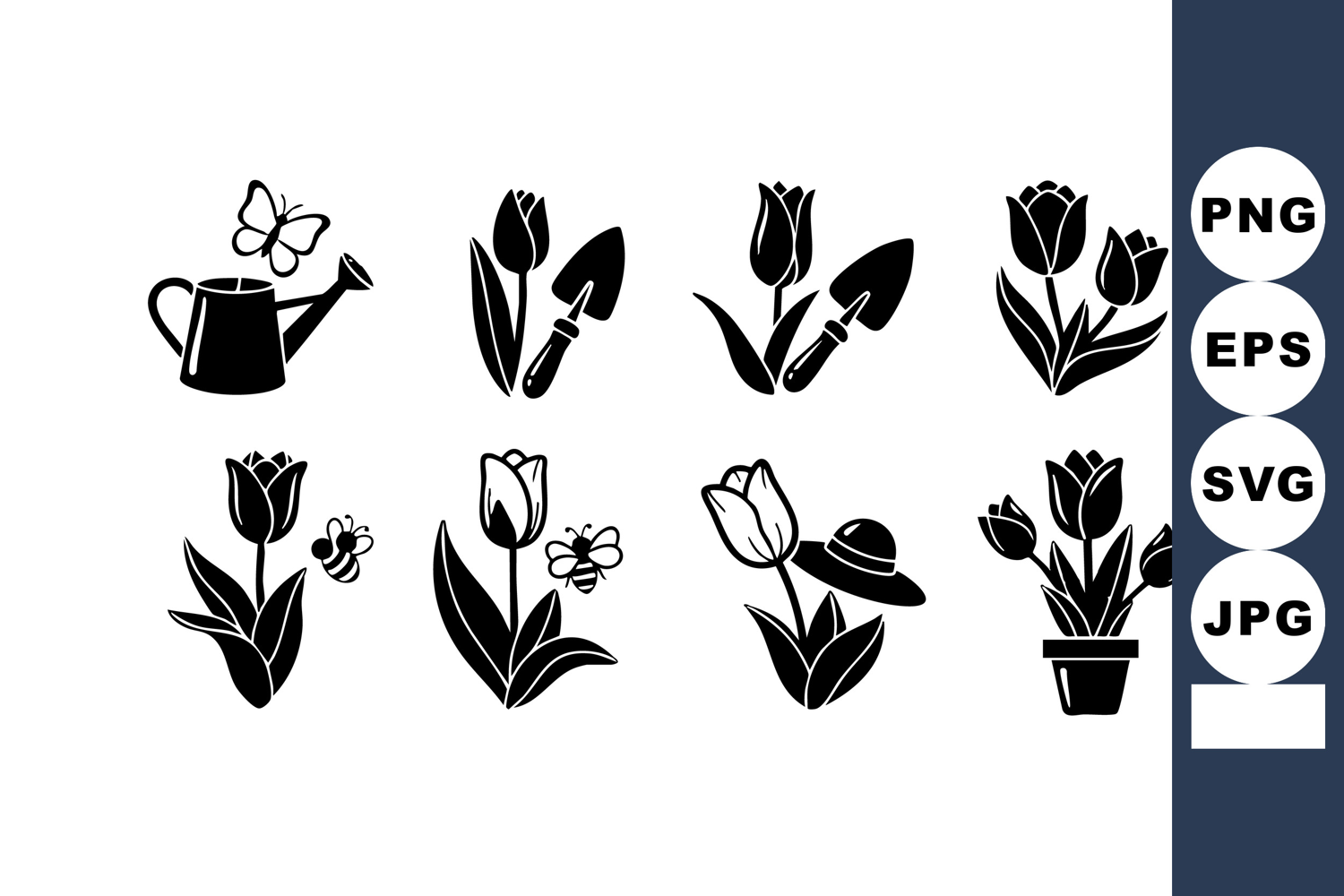 Spring Vector Nature Flower Silhouette Butterfly Insect Bee Tulip Gardening