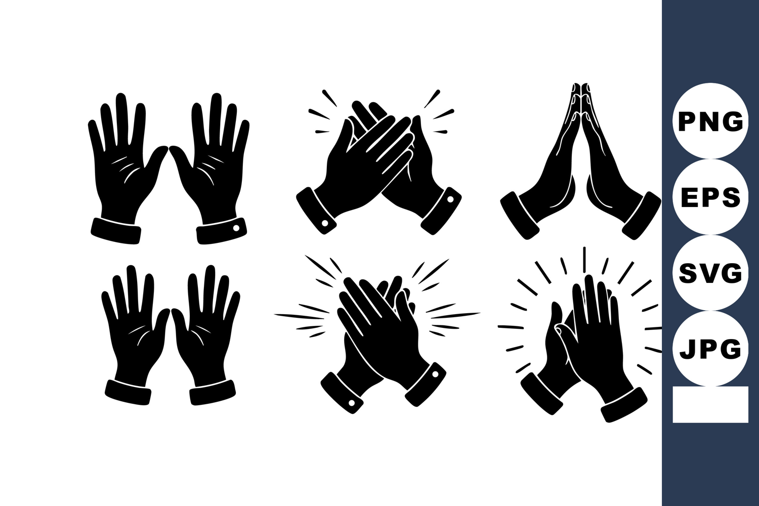 Hands clapping and praying gestures vector with black silho
