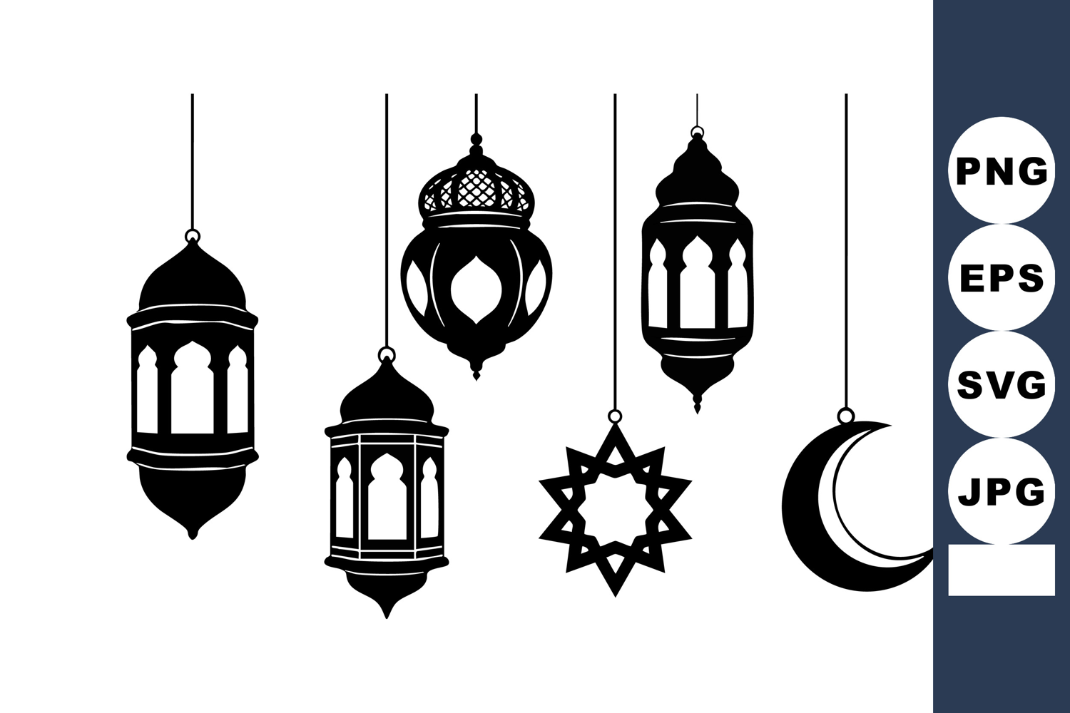 Vector Design Silhouette Decoration Star Moon Hanging Lantern Islamic Crescent