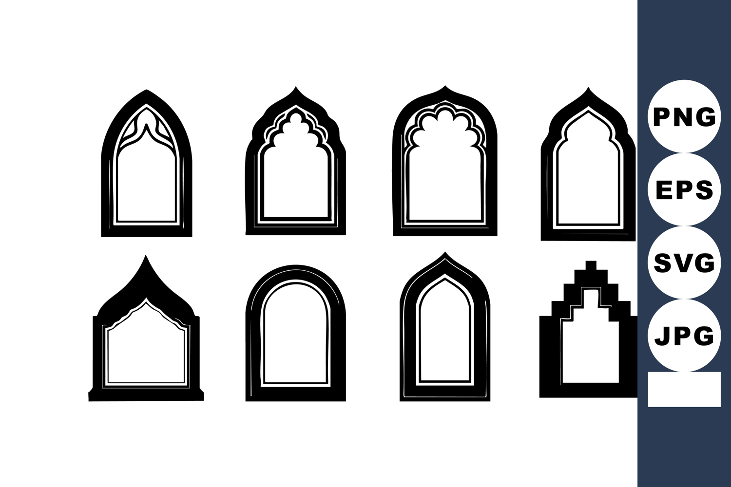 Similar Design Products to of eight different black gothic window frame silhouettes vec