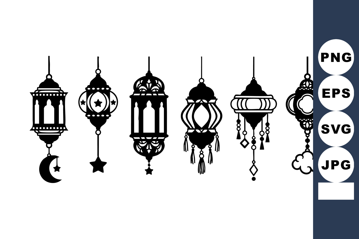 Black Silhouette Hanging Islamic Lanterns with Crescent Star example image 1