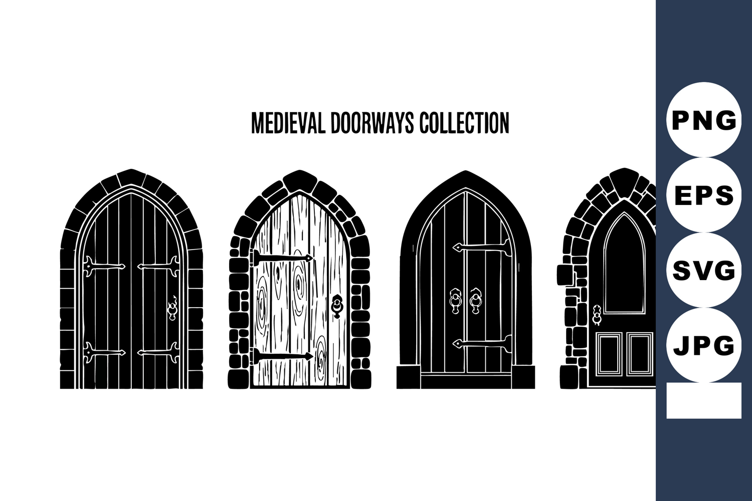Medieval doorways collection with gothic arch designs in bla example image 1