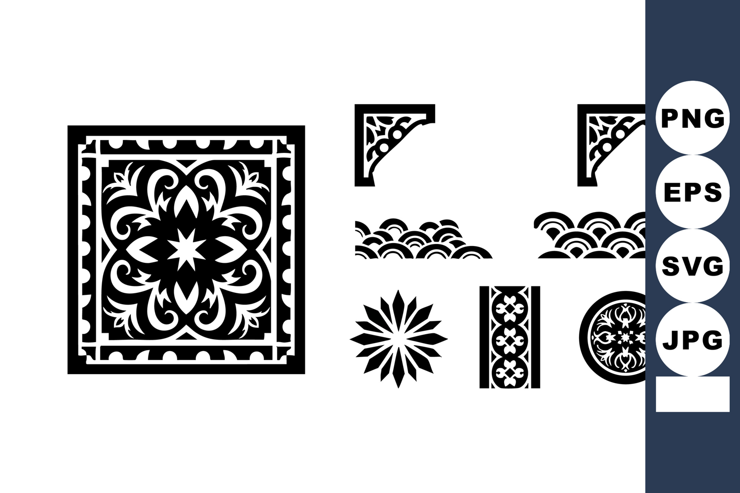 Similar Design Products to Ornamental decorative elements with floral and geometric pa