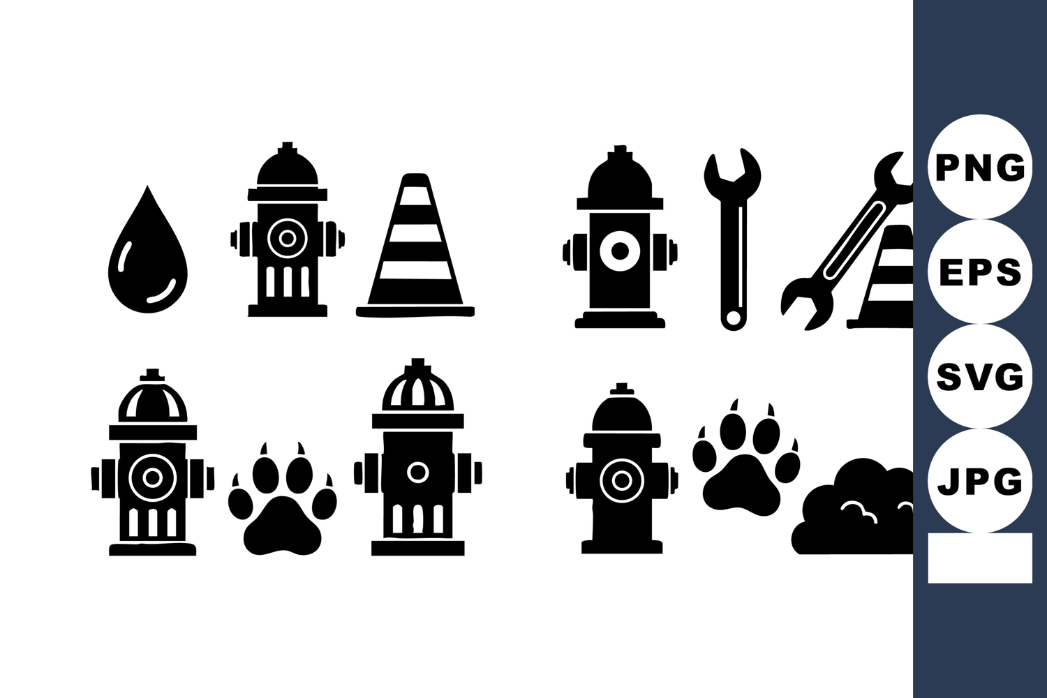 Fire hydrant paw print traffic cone wrench icons vector ill example image 1