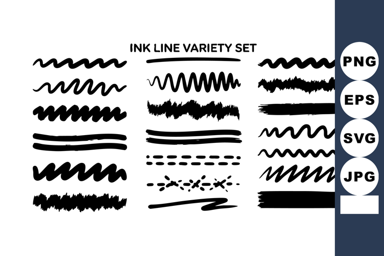 Ink Line Variety Set with Different Brush Strokes and Textur