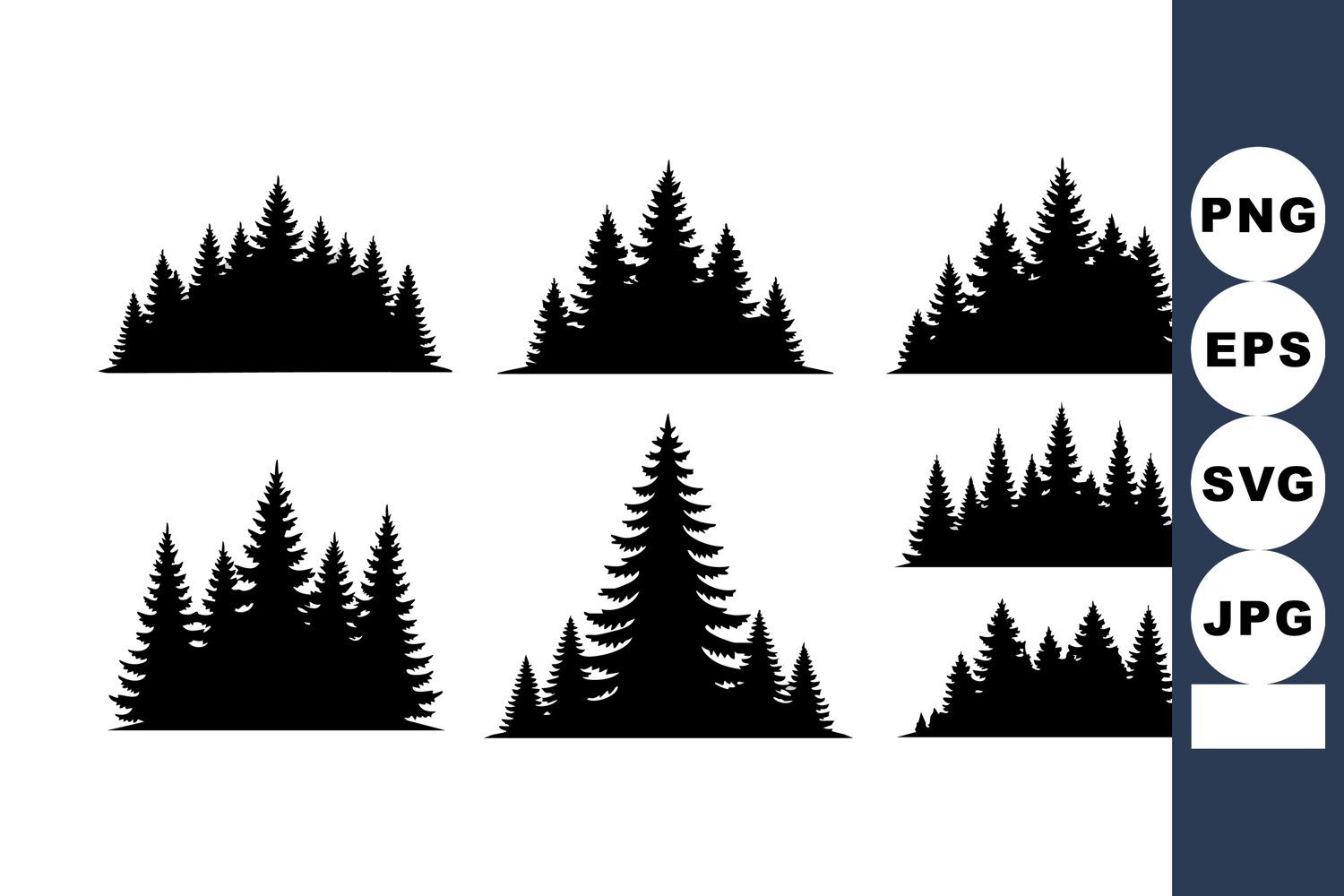 Pine tree silhouettes set with six different forest shapes f example image 1