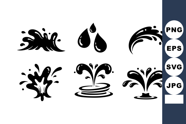 Water splash droplets and fountain design elements in black example image 1