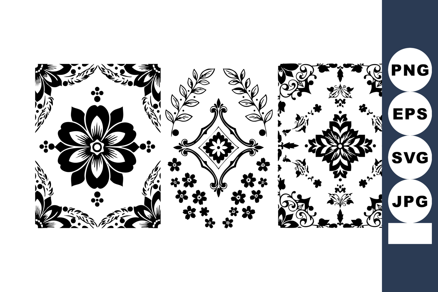 Vintage Ornament Black Design Leaf Floral Flower Pattern Wreath Decoration