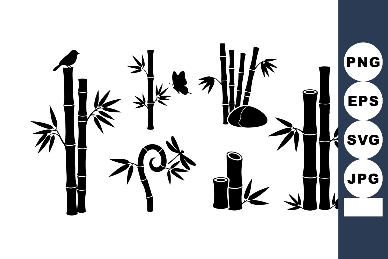 Bamboo silhouette collection with bird and leaves nature example image 1